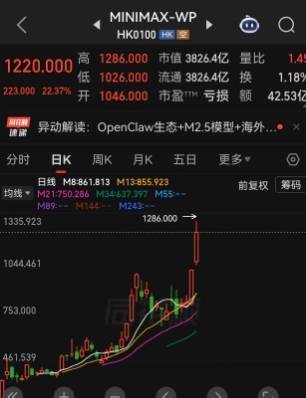 3月10日,在互联网“养龙虾”热潮推动下,港股互联网科技股迎来爆发,大模型双雄MiniMax与智普双双大涨,其中MiniMax一度大涨近29%,最高报1286港元/股,再次创出历史新高,1300港元大关已经近在咫尺,截至收盘MiniMax报1220港元/股,大涨22.37%,总市值达到3826亿港元,一日之内市值骤增近700亿港元,相当于一天之内涨出一个比亚迪电子或两个金山软件。智普股价盘中也大涨21%,最高报697港元/股,距离2月20日725港元/股的历史高点,并不遥远。截至收盘,智普报649港元/股,上涨12.87%,总市值达2894亿港元。